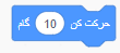 بلوک حرکت کن سادهترین راه برای شروع حرکت شکلک است. میتوانید با کلیک روی عدد ۱۰ آن را به حالت انتخاب درآورده و تغییر دهید تا میزان حرکت شکلک شما تغییر کند.
