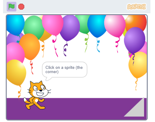 وقتی پرچم سبز کلیک شد زمانی بلوک‌های زیر خود را اجرا می‌کند که بر روی پرچم سبز بالای صحنه کلیک شود.