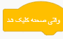 وقتی صحنه کلیک شد اجرای بلوک‌های زیر آن زمانی است که روی صحنه (پس‌زمینه) کلیک کنید.
