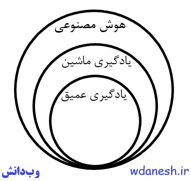 یادگیری عمیق زیرمجموعه‌ای از یادگیری ماشینی است که خود یادگیری ماشینی هم زیرمجموعه‌ای از هوش مصنوعی است.